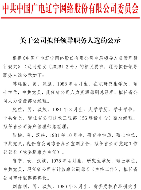 中国广电辽宁网络股份有限公司(简称中国广电辽宁公司)前身为成立于2010年2月的北方联合广播电视网络股份有限公司,系中央国有文化企业——中国广电网络股份有限公司省级子公司、辽宁省国有文化高新技术企业,是按照现代企业制度打造的集网络建设、传输、运营及多功能开发与应用为一体综合网络运营商。