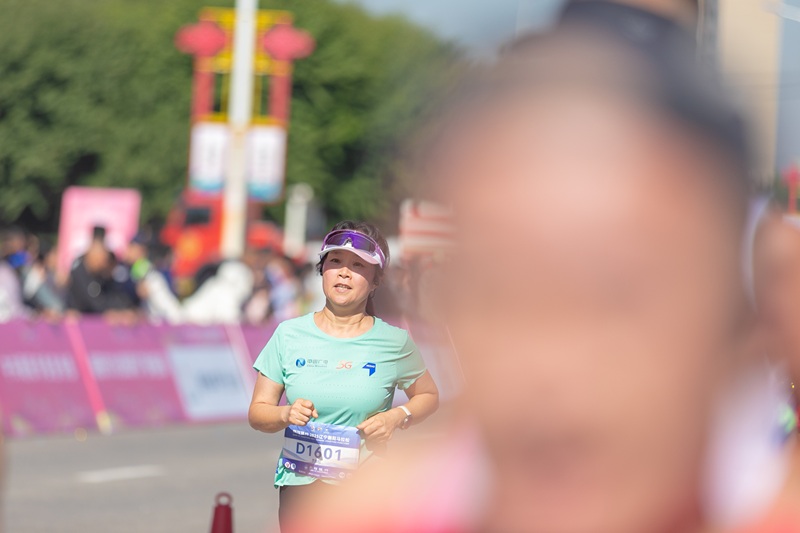 赛跑中的“悦跑”马拉松队员朱万玲