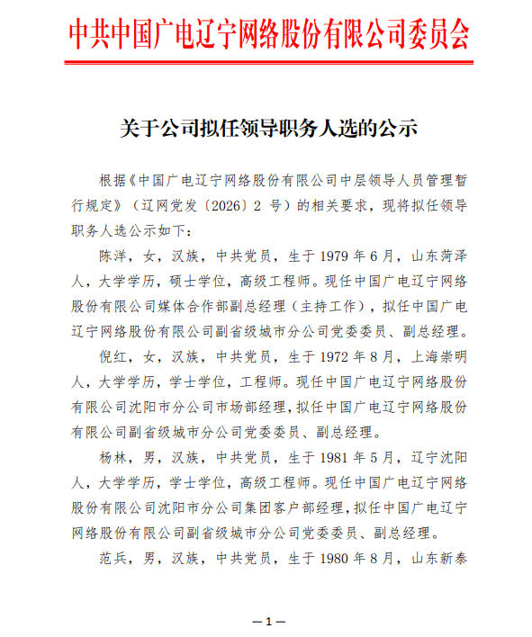 关于公司拟任领导职务人选的公示